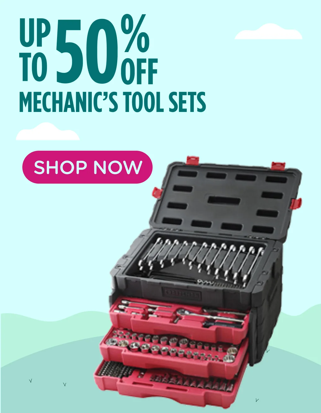 Savings range 5-50%. Offer valid while supplies last. Discount reflected in prices shown. Prices may vary. Mechanic’s Tool Set products are available in mainland locations, excluding HI, AK and U.S Territories.Sears does not currently ship to P.O. Boxes, Puerto Rico, Guam, US Virgin Islands, orinternational locations.